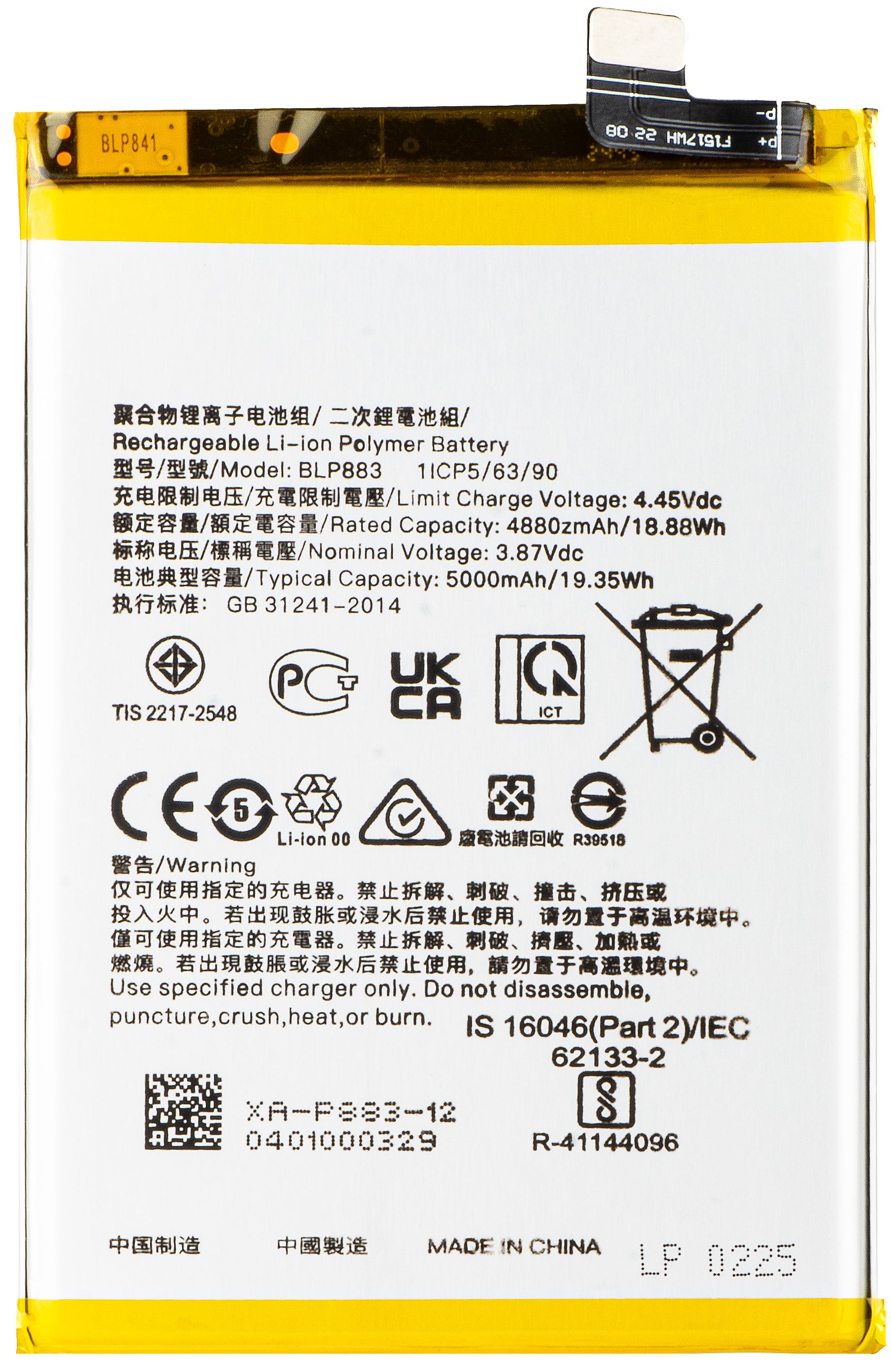 | Model acumulator | BLP883 |