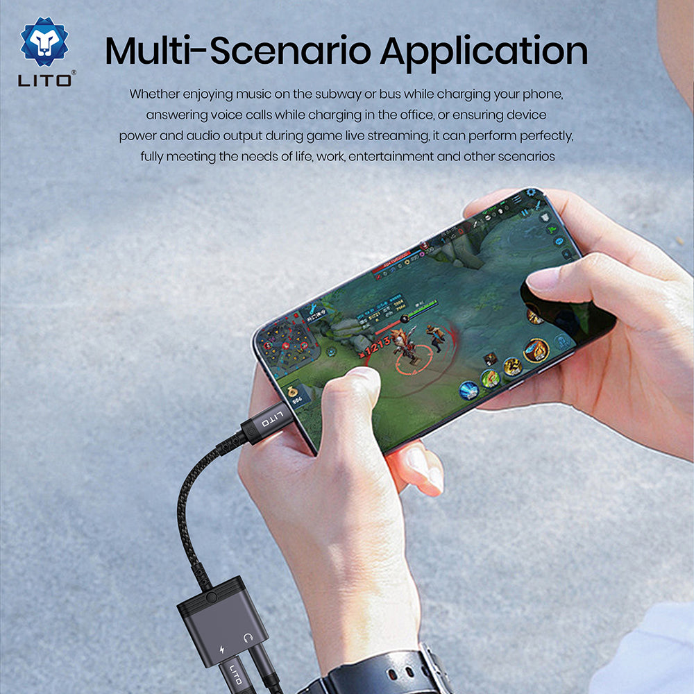 Adaptorul audio Lito LA04T iti permite sa asculti muzica cu castile tale cu mufa 3.5mm si sa incarci telefonul sau tableta prin USB-C in acelasi timp,