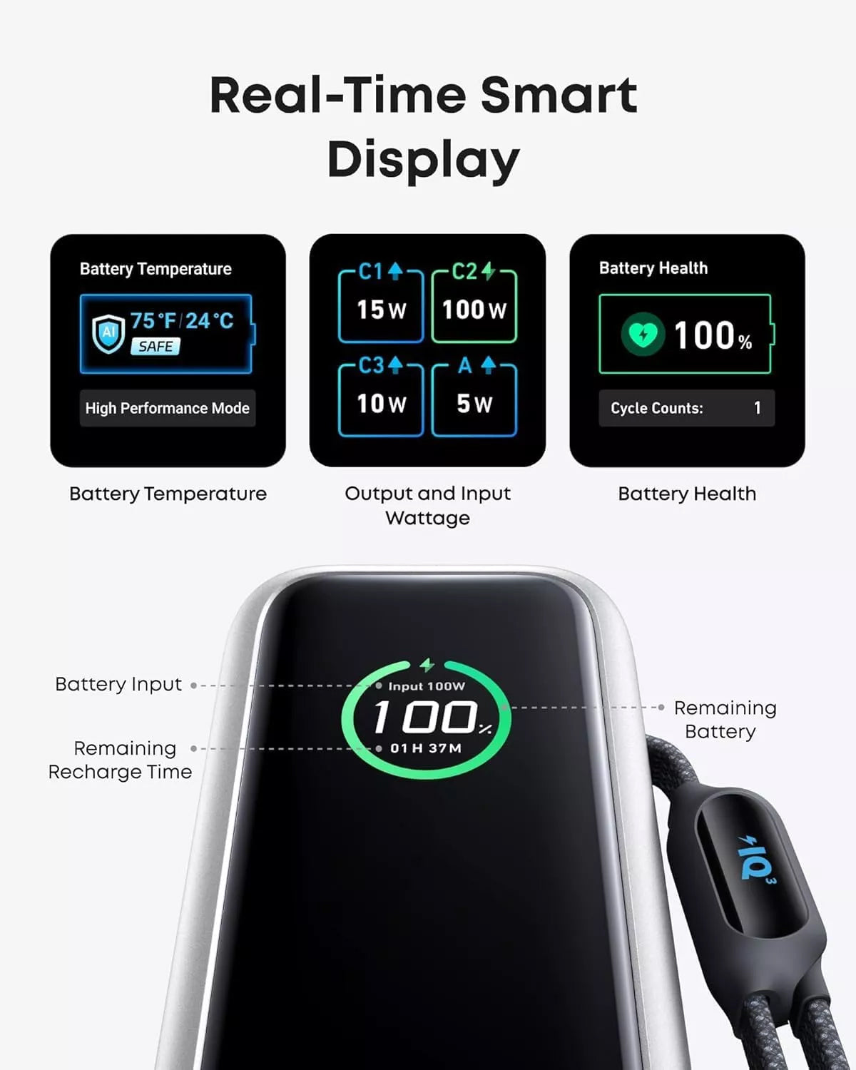 Ideal daca ai mai multe gadgeturi sau vrei sa imparti bateria cu colegii sau prietenii. Fiecare port USB-C ofera pana la 100W,