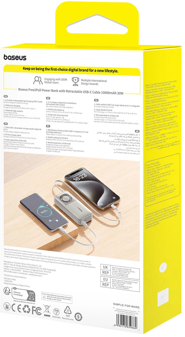 Baseus Free2Pull este bateria externa ideala pentru cei care calatoresc frecvent si au nevoie de energie la indemana. Cu o capacitate generoasa