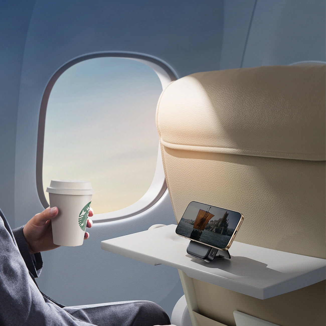 suportul integrat iti permite sa folosesti telefonul hands-free, ideal pentru apeluri video sau vizionarea de continut.