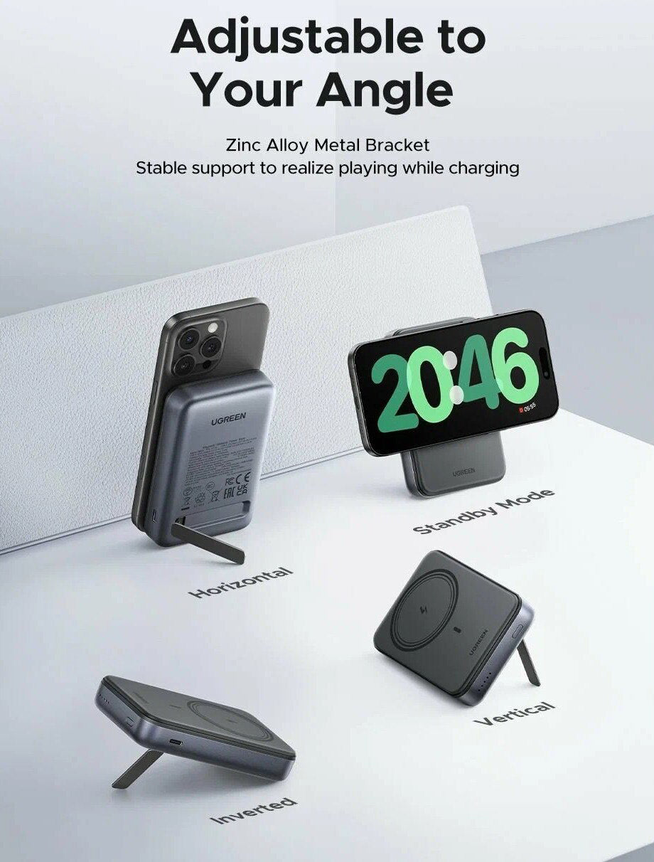 Designul inteligent, cu dimensiuni compacte si suport pliabil, transforma aceasta baterie intr-un partener practic pentru calatorii, birou sau uz zilnic.