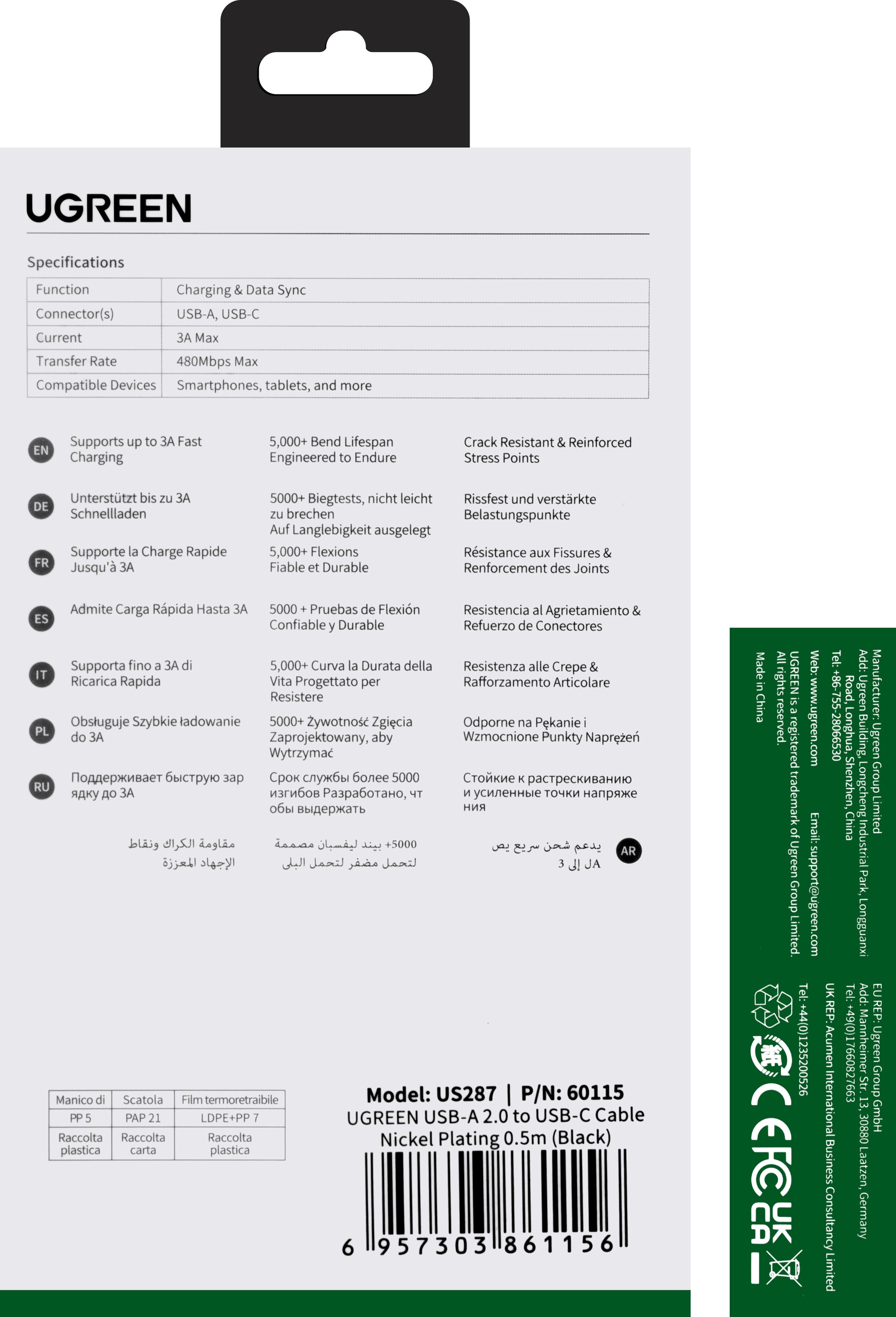 Cablul UGREEN US287 este proiectat pentru incarcare rapida si transfer eficient de date intre dispozitivele tale.
