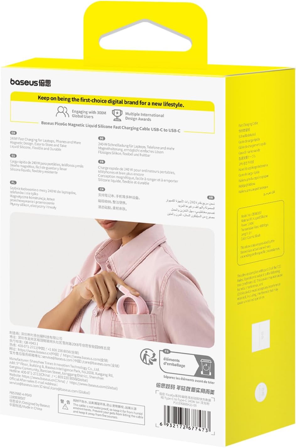 Cablul USB-C la USB-C Baseus PicoGo combina durabilitatea cu un design elegant, fiind realizat din policarbonat si silicon lichid placut la atingere.
