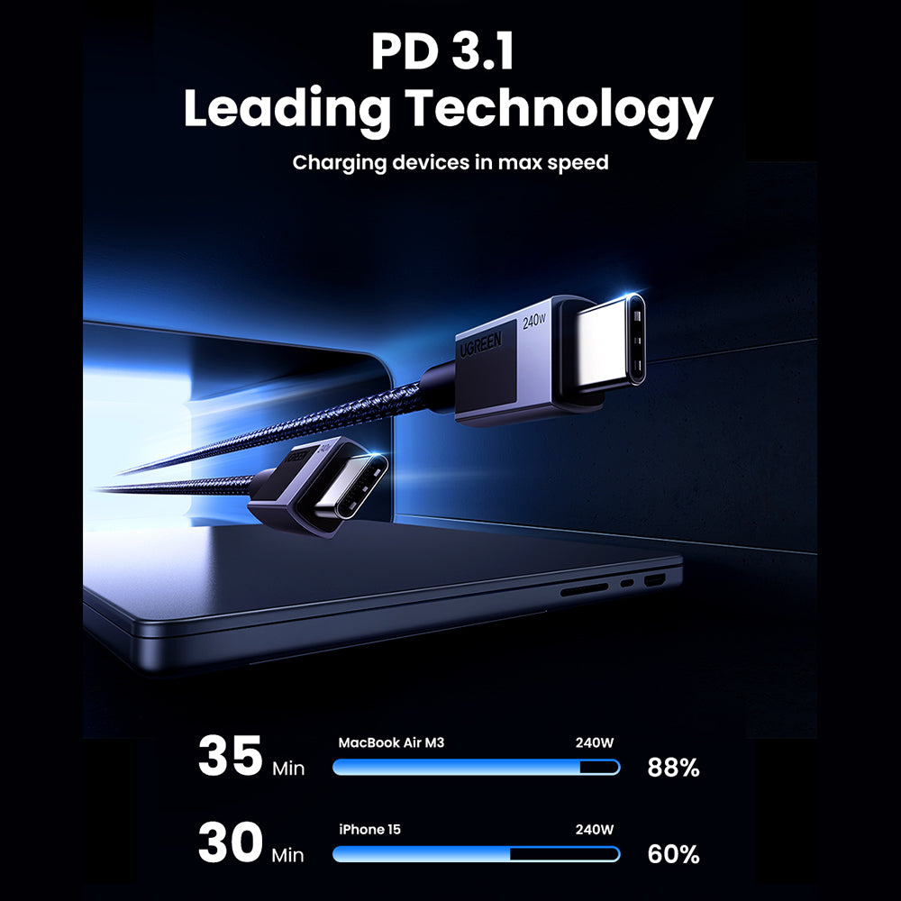 Cablul USB-C la USB-C UGREEN L513 este solutia perfecta pentru incarcare rapida si transfer eficient de date. Cu o putere maxima impresionanta de 240W (48V/5A),