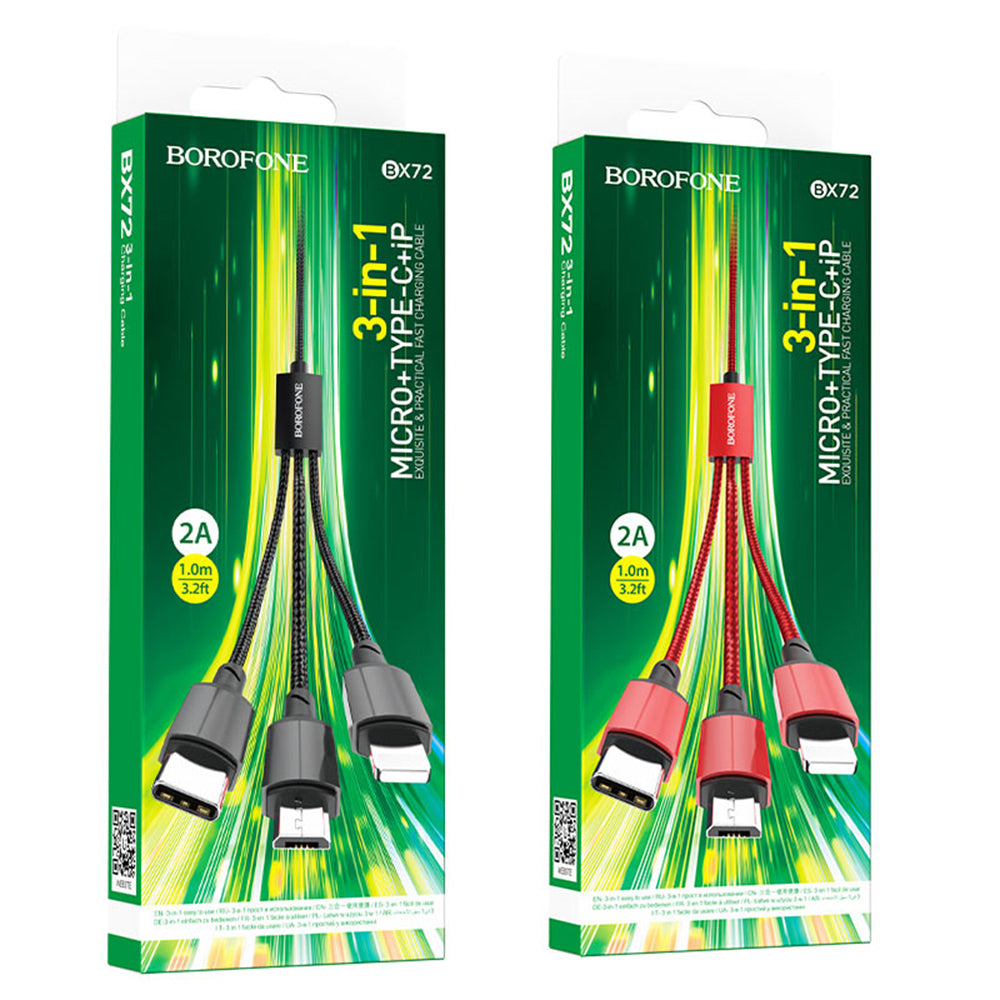 Borofone BX72 este cablul 3-in-1 ideal pentru utilizatorii care au mai multe dispozitive si vor o solutie simpla si eficienta. Echipat cu trei conectori - USB-C,