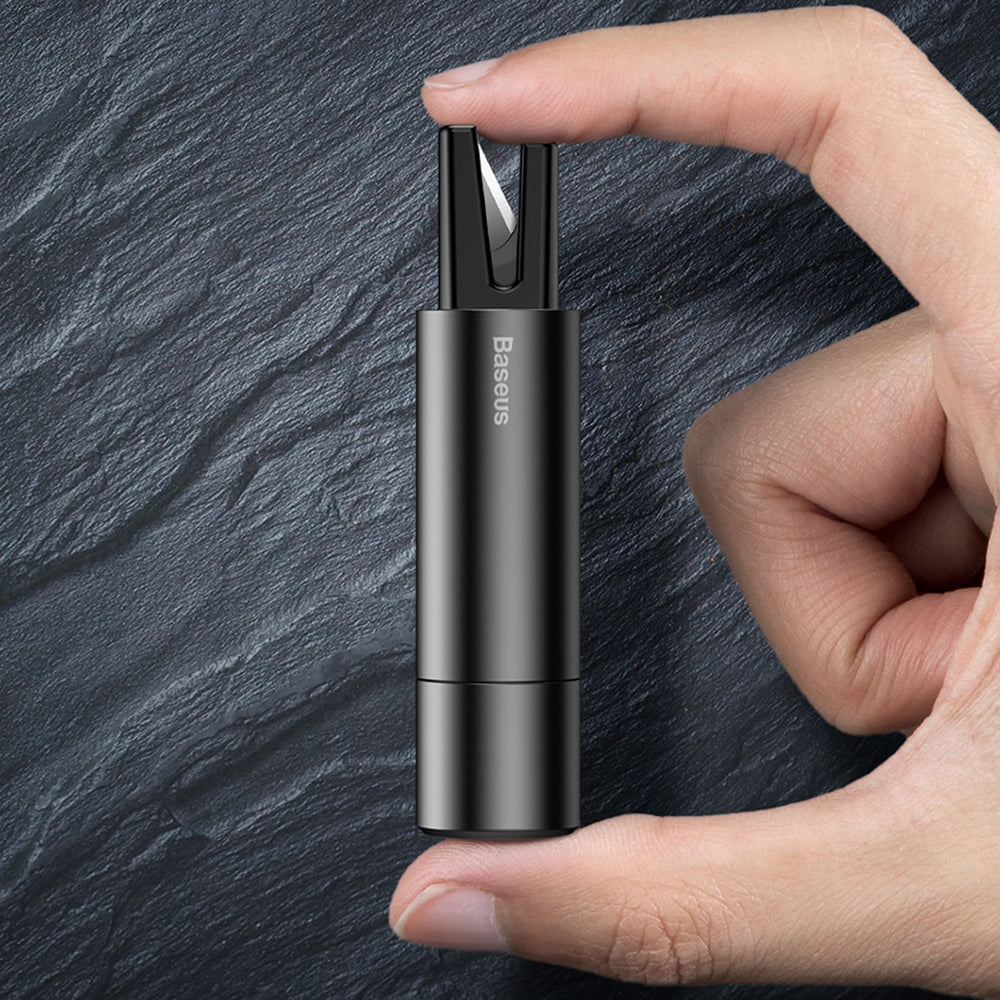 In interiorul gadget-ului este incorporata o lama super ascutita pentru taierea rapida a centurilor de siguranta in caz de accident.