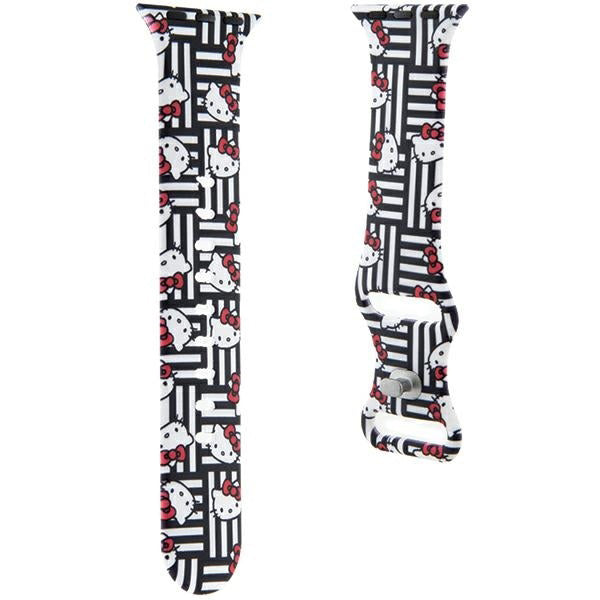 Curea Hello Kitty Silicone Kitty Heads & Stripes pentru Apple Watch 42mm / 41mm / 40mm / 38mm Series, Neagra