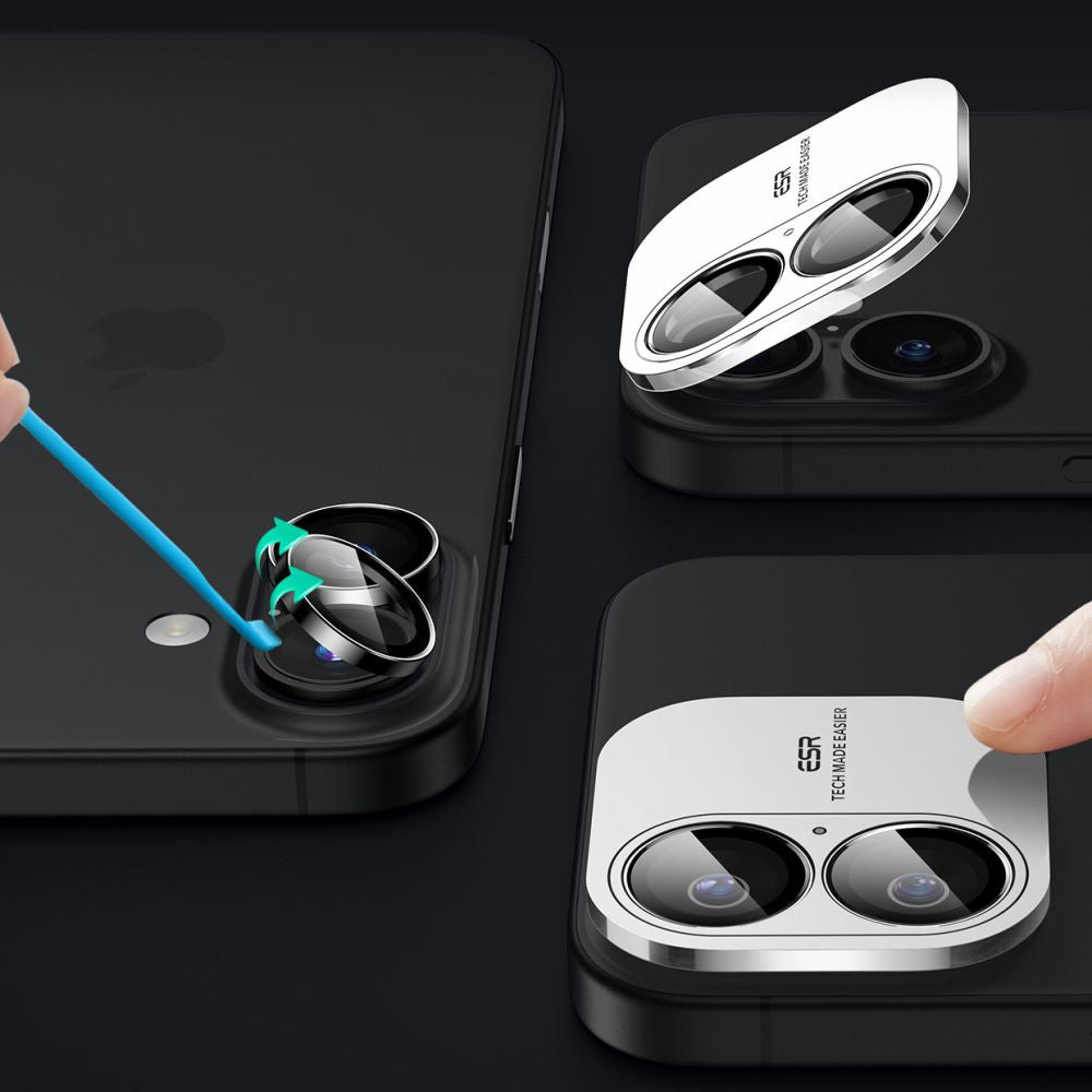 Folie de protectie Camera Spate ESR Armorite pentru Apple iPhone 17 / 16 Plus / 16, Sticla Securizata, Neagra