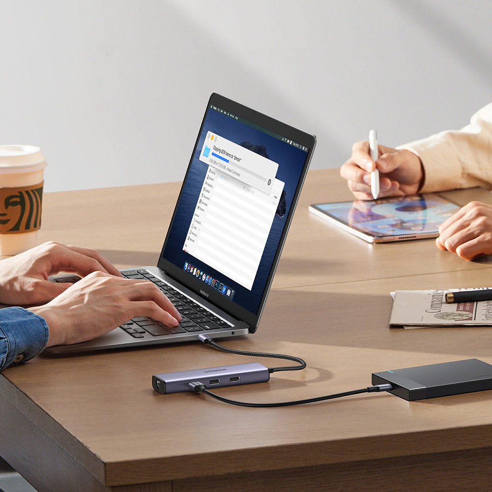 Compact, elegant si usor de transportat, hub-ul USB-C UGREEN CM512 transforma complet modul in care folosesti laptopul