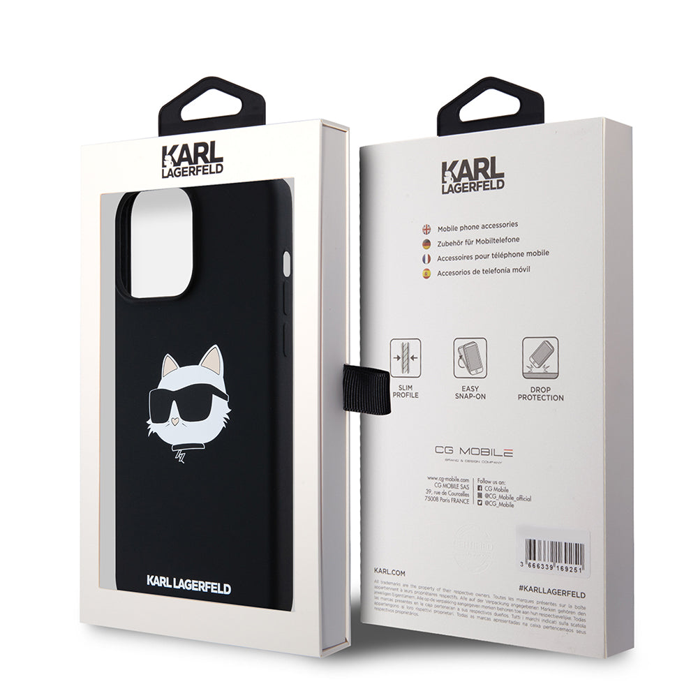 Husa MagSafe pentru Apple iPhone 15 Pro Max, Karl Lagerfeld, Silicone Choupette's Head, Neagra
