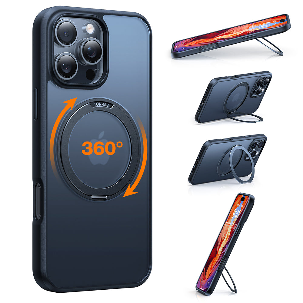 Husa MagSafe pentru Apple iPhone 16 Pro Max, Torras, Ostand Pro, Neagra
