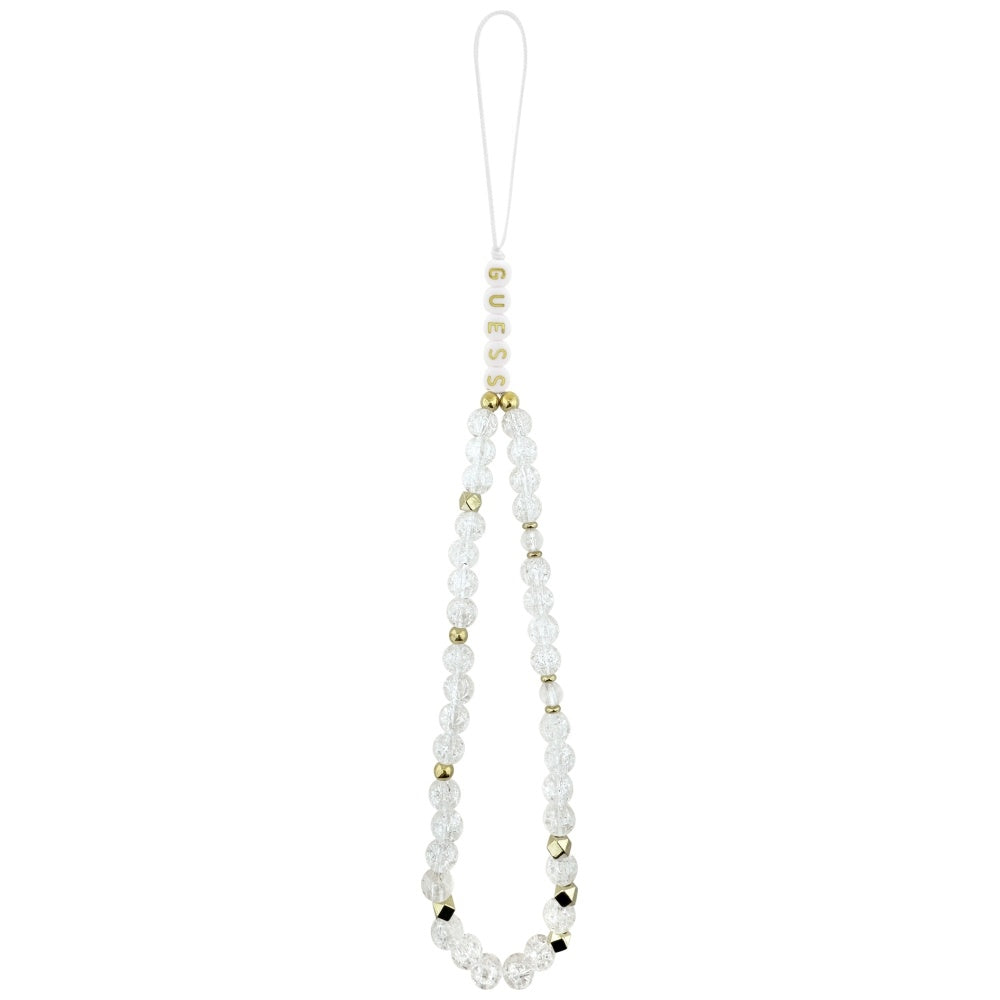 Husa MagSafe pentru Apple iPhone 17, Guess, IML Flowers with Pearl Strap, Alba