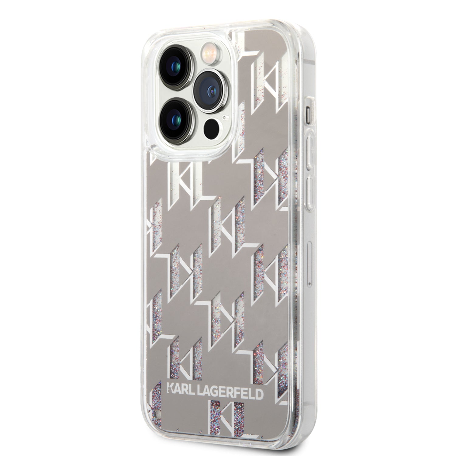 Husa pentru Apple iPhone 14 Pro, Karl Lagerfeld, Liquid Glitter Monogram, Argintie