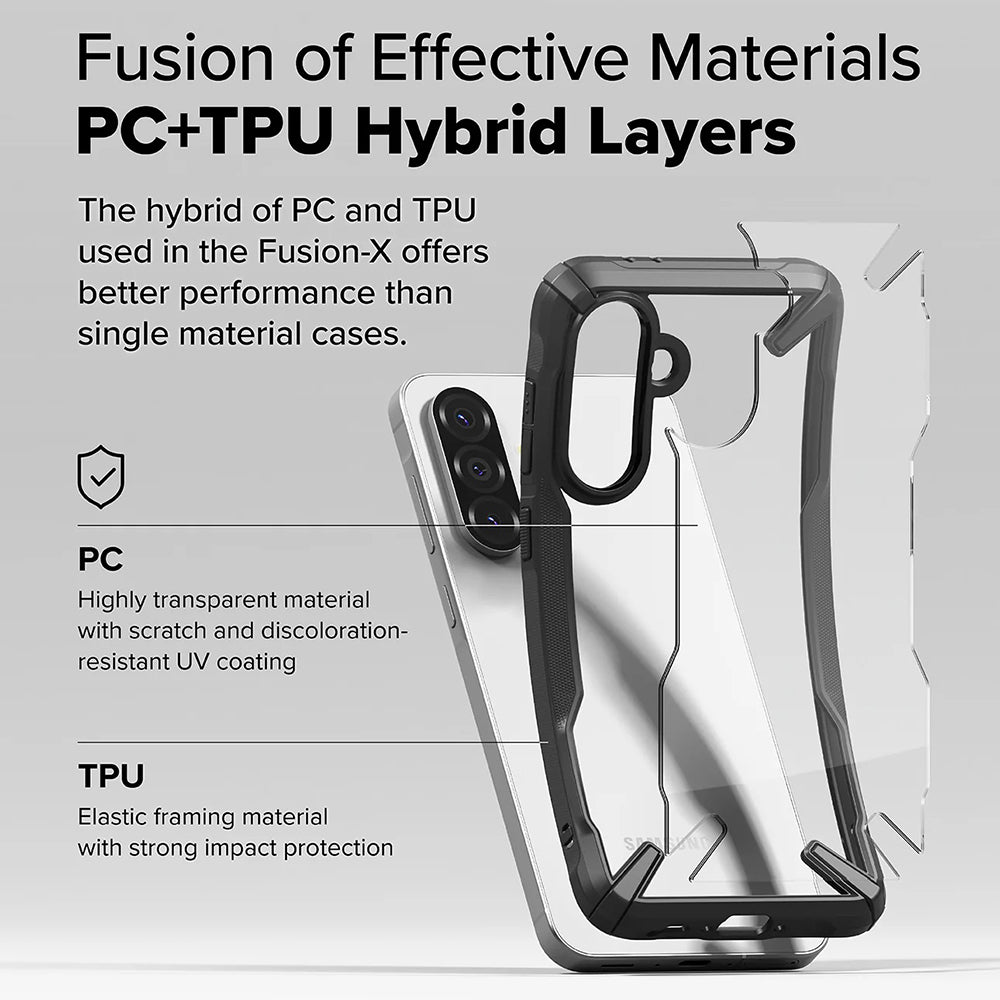 Husa Ringke Fusion X este confectionata din policarbonat rezistent si TPU moale.