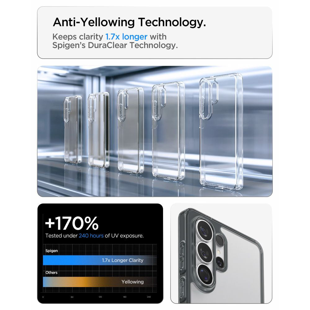 Husa Ultra Hybrid de la Spigen ofera protectie indelungata telefonului tau. Pernele de silicon integrate in carcasa iti feresc dispozitivul la impact, fiind create pentru dispersia socurilor.