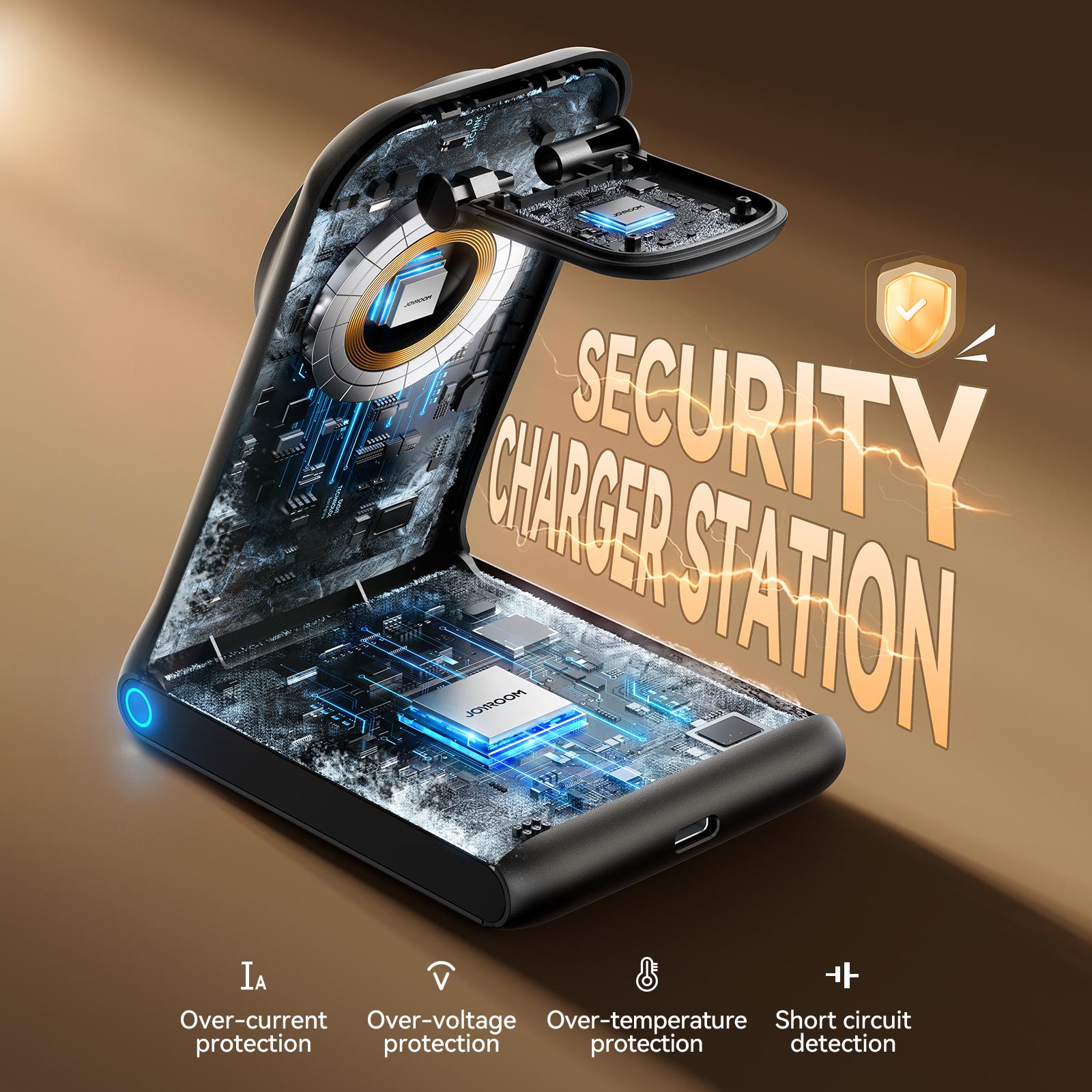 Scapa de cablurile incurcate si bucura-te de incarcarea fara fir cu Joyroom JR-W15, o statie 3-in-1 ideala pentru birou sau acasa.