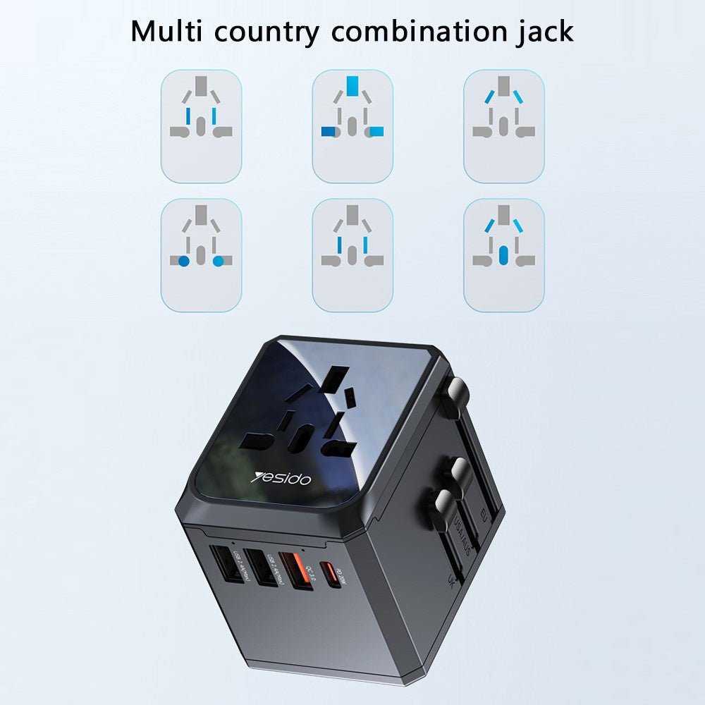 Incarcator Retea Yesido MC24 Travel, 20W, 3A, 3 x USB-A - 1 x USB-C, Negru