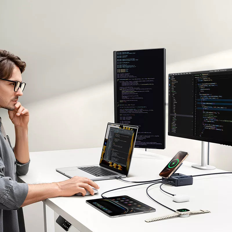 Statia de incarcare Baseus Nomos 5-in-1 este solutia ideala pentru incarcarea rapida si eficienta a mai multor dispozitive in acelasi timp.