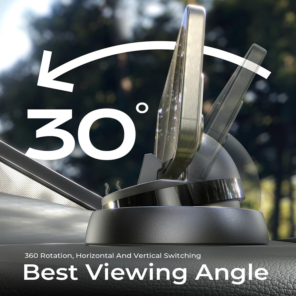 Baza rotativa permite ajustarea unghiului de vizualizare, astfel incat ecranul dispozitivului sa fie usor de urmarit fara reflexii deranjante. Aceasta flexibilitate contribuie la o experienta de condus mai sigura.