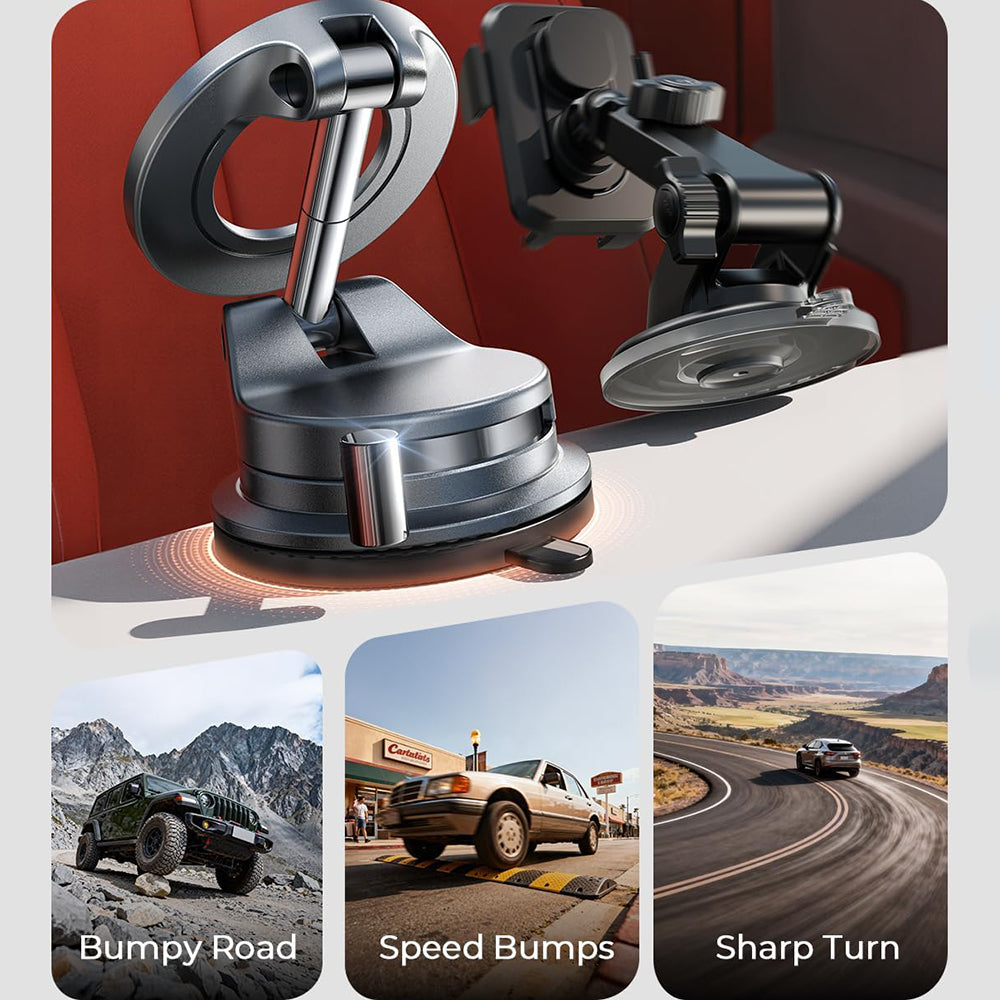 Suportul auto dispune de un sistem magnetic, compatibil MagSafe. Telefonul se fixeaza rapid si sigur de suport, fara sa alunece, indiferent de conditiile de trafic. Comanda-l acum si convinge-te!