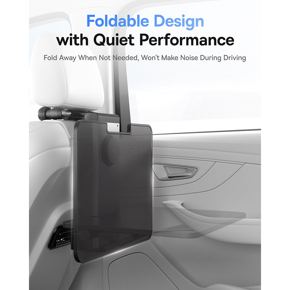Suportul include o tava pliabila, ideala pentru servirea mesei, munca sau vizionarea filmelor, si un suport magnetic pentru telefon, rotativ 360 de grade