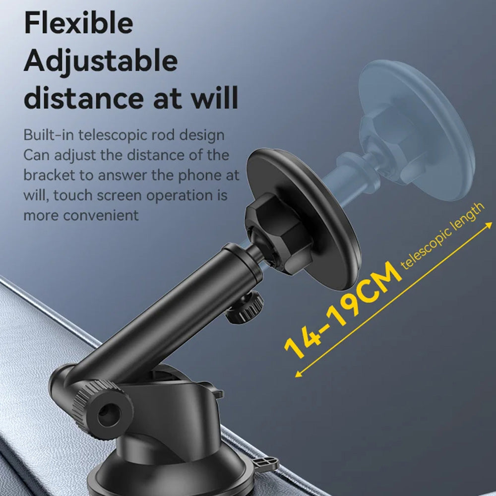 se ajusteaza pentru a gasi distanta ideala fata de sofer. Compatibil cu telefoanele MagSafe (iPhone 12 si versiunile ulterioare), suportul poate
