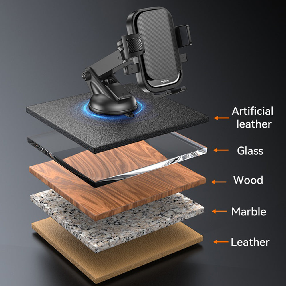 Prin sistemul gravitational de prindere in trei puncte si ventuza cu aderenta puternica, suportul mentine telefonul stabil, chiar si pe cele mai denivelate drumuri.