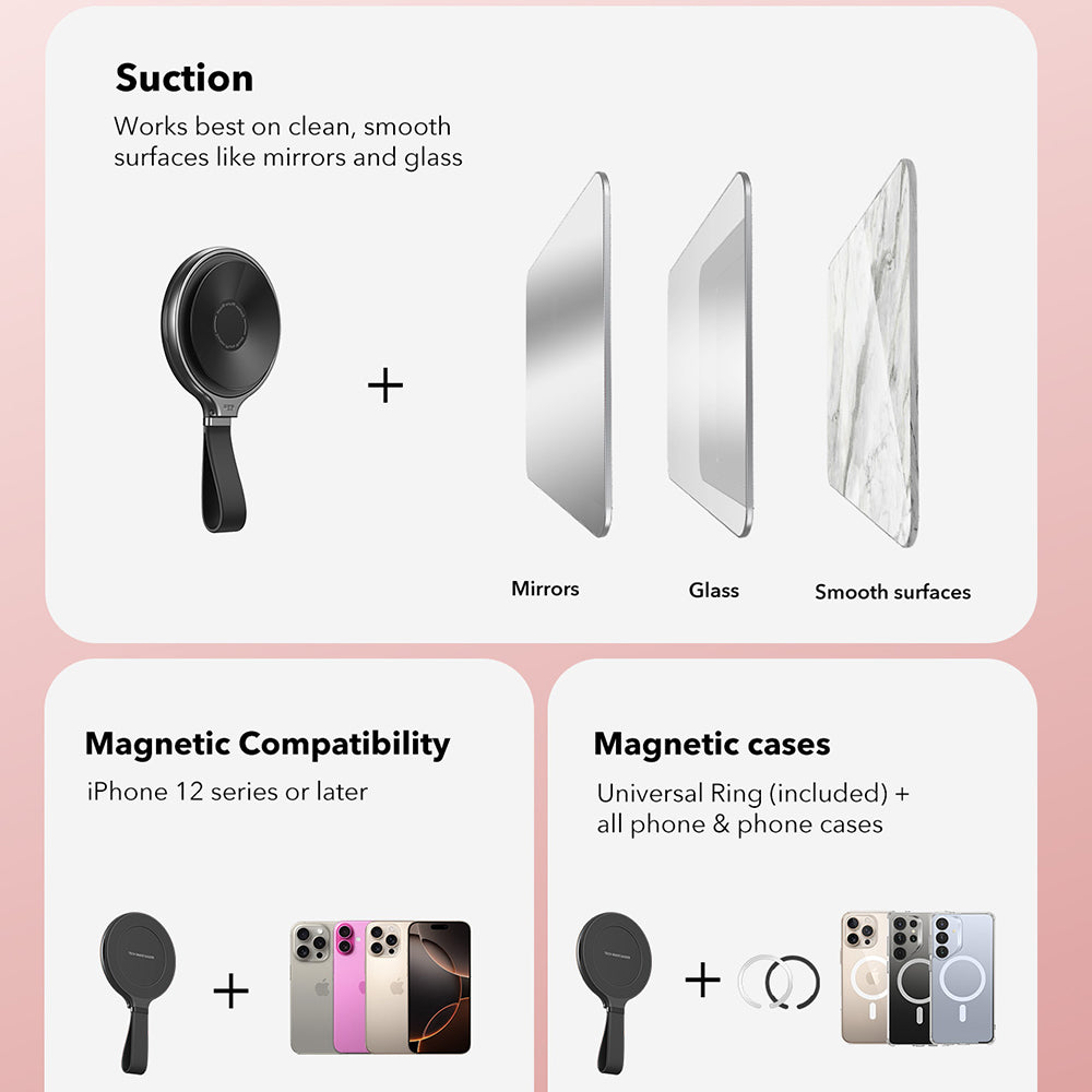 Dispune de o ventuza puternica ce asigura o fixare sigura pe orice suprafata curata si neteda.
